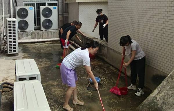 党办院办党支部党员积极参与清扫活动。右江民族医学院供图